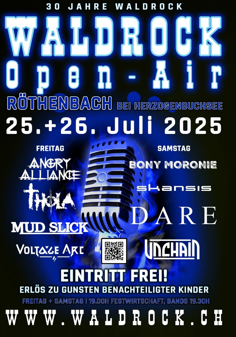 Die Organisatoren des WALDROCK-OPEN-AIRs haben sich vor Jahren die Unterstützung benachteiligter Kinder zum Ziel gesetzt. Alles, was am WALDROCK geschieht, wird in Fronarbeit geleistet. Musiker, Helfer, Organisatoren. Jeder, der in irgendeiner Form einen Beitrag leistet, verzichtet auf Lohn, Gage usw.